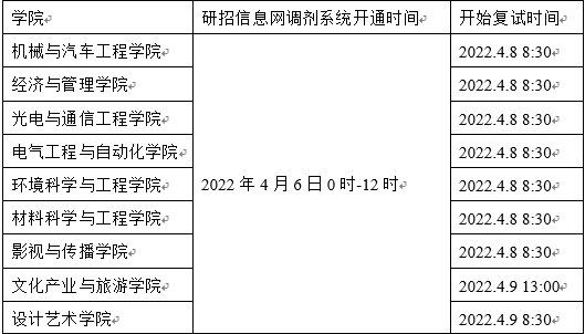 经研究决定,我校研招信息网调剂系统(2022年研究生招生第一次调剂复试时间)安排如下(表1)。请考生及时填报志愿,并且保持手机畅通。经审核符合复试条件者,二级招生学院将主动联系考生进行复试。考生收到复试通知后,须在二级招生学院要求的时间内,在调剂系统中确认是否参加调剂复试,过时未回复视为放弃此次调剂复试资格。